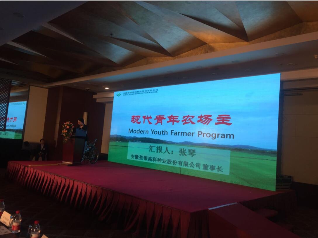 張琴董事長(zhǎng)的發(fā)言著重介紹了由荃銀高科發(fā)起的“現(xiàn)代青年農(nóng)場(chǎng)主”培養(yǎng)計(jì)劃,從農(nóng)業(yè)企業(yè)的角度闡述了中國(guó)新型職業(yè)農(nóng)民培養(yǎng)的必要性和道路艱辛。她指出,荃銀高科作為國(guó)內(nèi)領(lǐng)先的種業(yè)企業(yè),有躬耕于壟畝的農(nóng)業(yè)情懷,有“良種良法配套”的發(fā)展需求,更有實(shí)現(xiàn)“全贏”的價(jià)值觀,于2012年發(fā)起企業(yè)社會(huì)責(zé)任項(xiàng)目“現(xiàn)代青年農(nóng)場(chǎng)主”,培養(yǎng)定位為:現(xiàn)代農(nóng)業(yè)的實(shí)踐者、糧食生產(chǎn)的貢獻(xiàn)者,美好鄉(xiāng)村的貢獻(xiàn)者、基層政權(quán)的鞏固者、國(guó)際合作的促進(jìn)者。為此,荃銀高科做出了很多的努力,也得到了社會(huì)各界的支持幫助和肯定。她強(qiáng)調(diào),中國(guó)農(nóng)業(yè)現(xiàn)代化發(fā)展道路之多艱,需要社會(huì)各界有識(shí)之士的共同努力。荃銀高科也將本著開放、合作、共贏的發(fā)展理念,希望越來(lái)越多的人參與到“現(xiàn)代青年農(nóng)場(chǎng)主”培養(yǎng)工作中來(lái),共同推進(jìn)中國(guó)新型職業(yè)農(nóng)民培養(yǎng)工作。