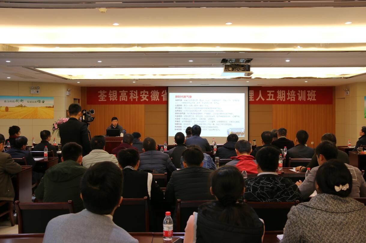 2017年11月30日上午,為深入學(xué)習(xí)宣傳中國(guó)共產(chǎn)黨第十九次全國(guó)代表大會(huì)精神,荃銀高科邀請(qǐng)黨的十九大代表、安徽農(nóng)業(yè)大學(xué)茶與食品科技學(xué)院院長(zhǎng)張正竹教授來(lái)公司作黨的十九大精神宣講。宣講報(bào)告會(huì)在荃銀高科六樓多功能廳舉行,公司經(jīng)營(yíng)班子成員、全體黨員、安徽省首屆農(nóng)業(yè)職業(yè)經(jīng)理人學(xué)員以及公司部分員工參加了學(xué)習(xí)。會(huì)議由公司黨支部書記廖孝波主持。