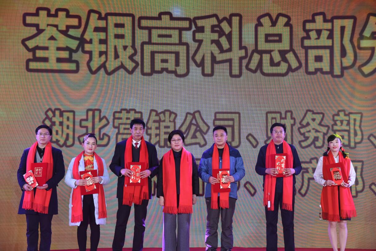晚會還設(shè)置了激動人心的抽獎環(huán)節(jié),各種豐厚的禮品,令現(xiàn)場沸騰。遠(yuǎn)在巴基斯坦的海外客戶、子公司湖北荃銀和遼寧鐵研的同事們雖未能來到聯(lián)歡會現(xiàn)場,但也為大家送上了新春祝福。聯(lián)歡會在激昂奮進(jìn)的《荃銀之歌》大合唱中圓滿落下了帷幕。