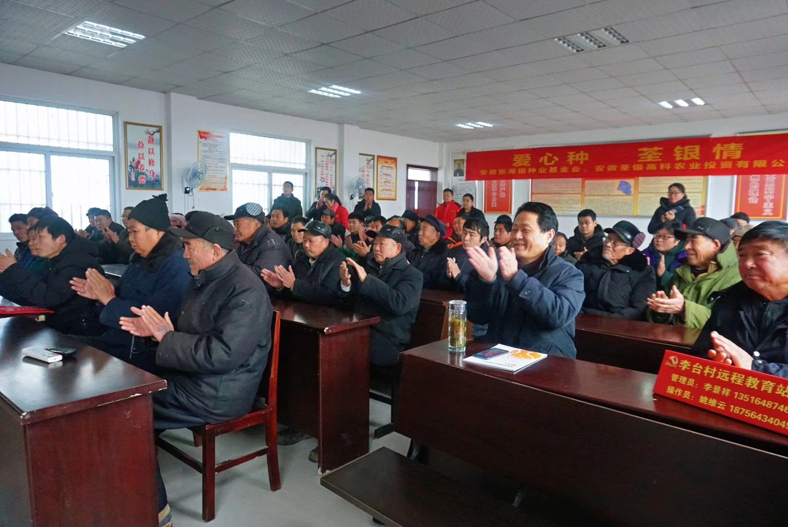 ??? 戴紹江副鎮(zhèn)長代表鎮(zhèn)黨委對此次活動的愛心捐贈和大力支持表示誠摯的感謝!徐中貴副主任在講話中說,壽縣是國家級貧困縣,全縣貧困人口達(dá)到13萬人,衷心感謝荃銀農(nóng)投、基金會和金豐公社三家單位積極承擔(dān)社會責(zé)任,為貧困戶提供優(yōu)質(zhì)良種、化肥和農(nóng)業(yè)技術(shù)服務(wù),希望受助的農(nóng)戶用自己勤勞的雙手和智慧創(chuàng)造幸福生活。