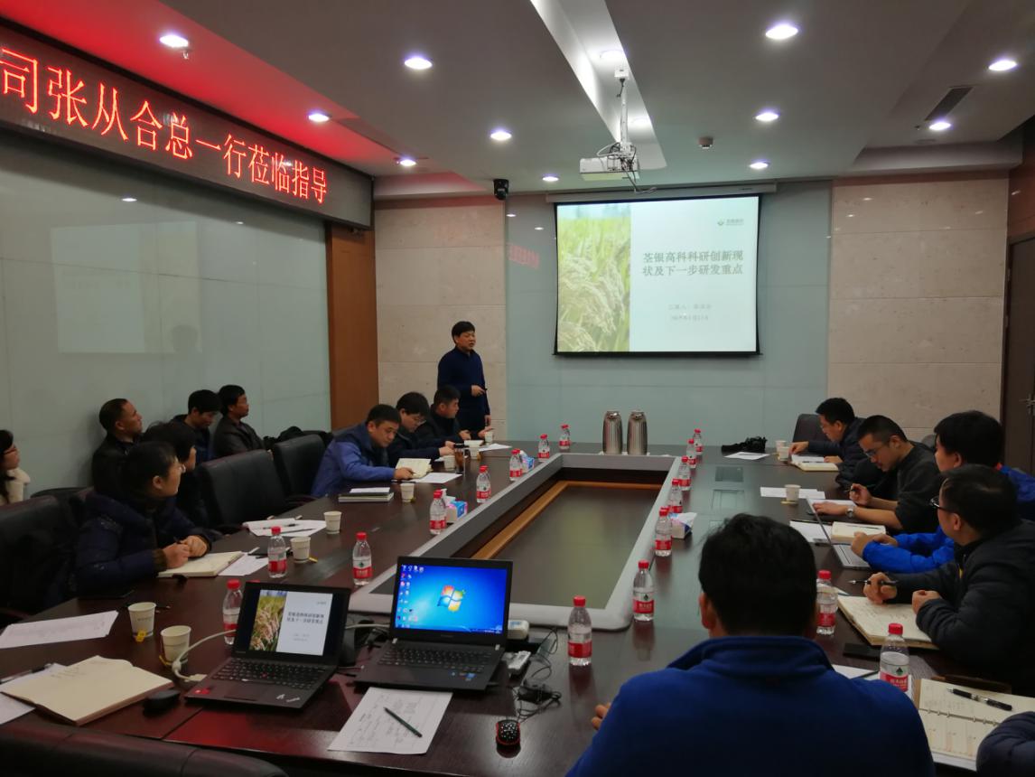 ??? 會(huì)上,陳俊仁副主任從基因編輯、基因組、水稻育種等方面對(duì)科技中心工作內(nèi)容、生物技術(shù)以及期待對(duì)接點(diǎn)進(jìn)行了介紹。張從合副總介紹了荃銀科研現(xiàn)狀及下一步研發(fā)重點(diǎn),并提出了科研育種相關(guān)需求。