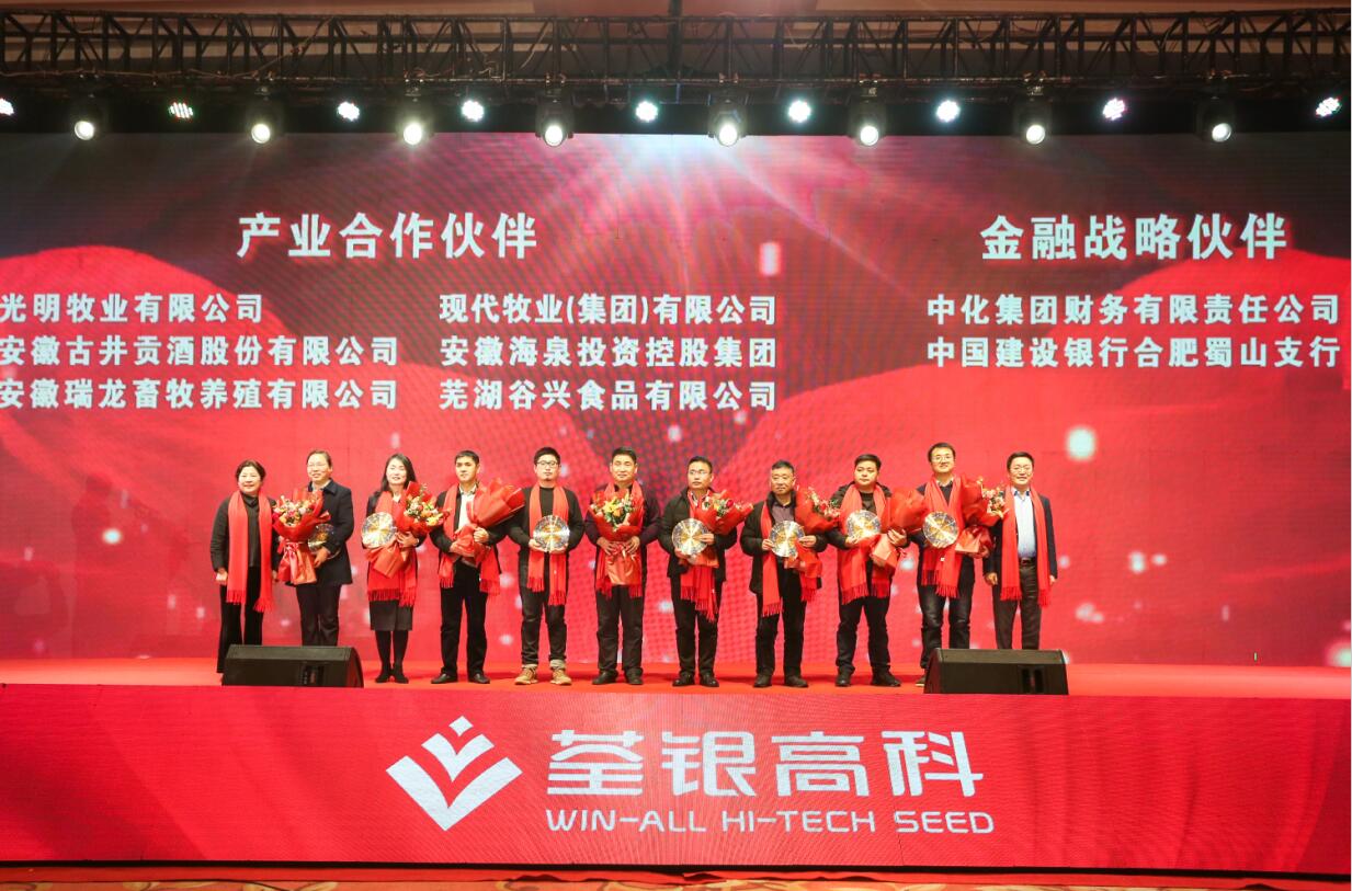 ? ? 創(chuàng)新合作,共贏發(fā)展。會上進(jìn)行了荃銀高科產(chǎn)業(yè)合作伙伴、金融戰(zhàn)略伙伴頒獎儀式。近年來,荃銀高科積極開展農(nóng)業(yè)生產(chǎn)社會化服務(wù)探索,不斷加強(qiáng)與產(chǎn)業(yè)伙伴、金融公司合作,構(gòu)建“品種+品牌+資本”戰(zhàn)略發(fā)展之路,打造產(chǎn)業(yè)鏈,形成閉環(huán),創(chuàng)新發(fā)展模式,為廣大農(nóng)戶提供從種到收一條龍服務(wù),推進(jìn)一二三產(chǎn)業(yè)融合,為現(xiàn)代農(nóng)業(yè)提供整體解決方案。